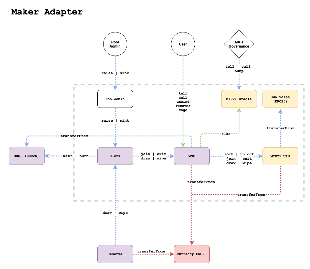 Some DROP tokens of specific Tinlake pools are accepted as collateral in Maker. In this case, a Debt ceiling is defined my Maker governance. In exchange for providing liquidity, DROP tokens are locked in a Maker vault as collateral. Some pools also include an additional over-collateralization as an additional protection. In a liquidation scenario, the overcollateralization would be paid by TIN token holders.